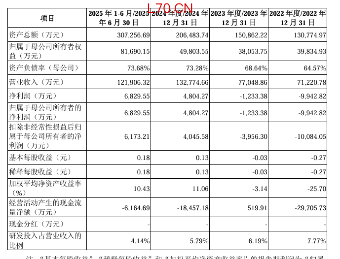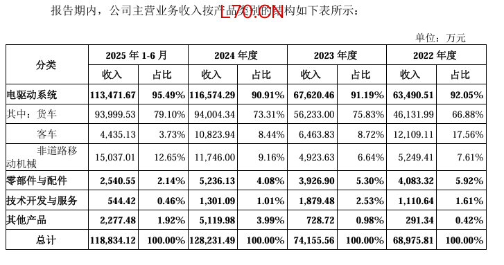 报告期内(2022年至2025年上半年),绿控传动的营业收入分别为7.12亿元、7.7亿元、13.28亿元、12.19亿元;净利润分别为-9942.82万元、-1233.38万元、4804.27万元、6829.55万元。