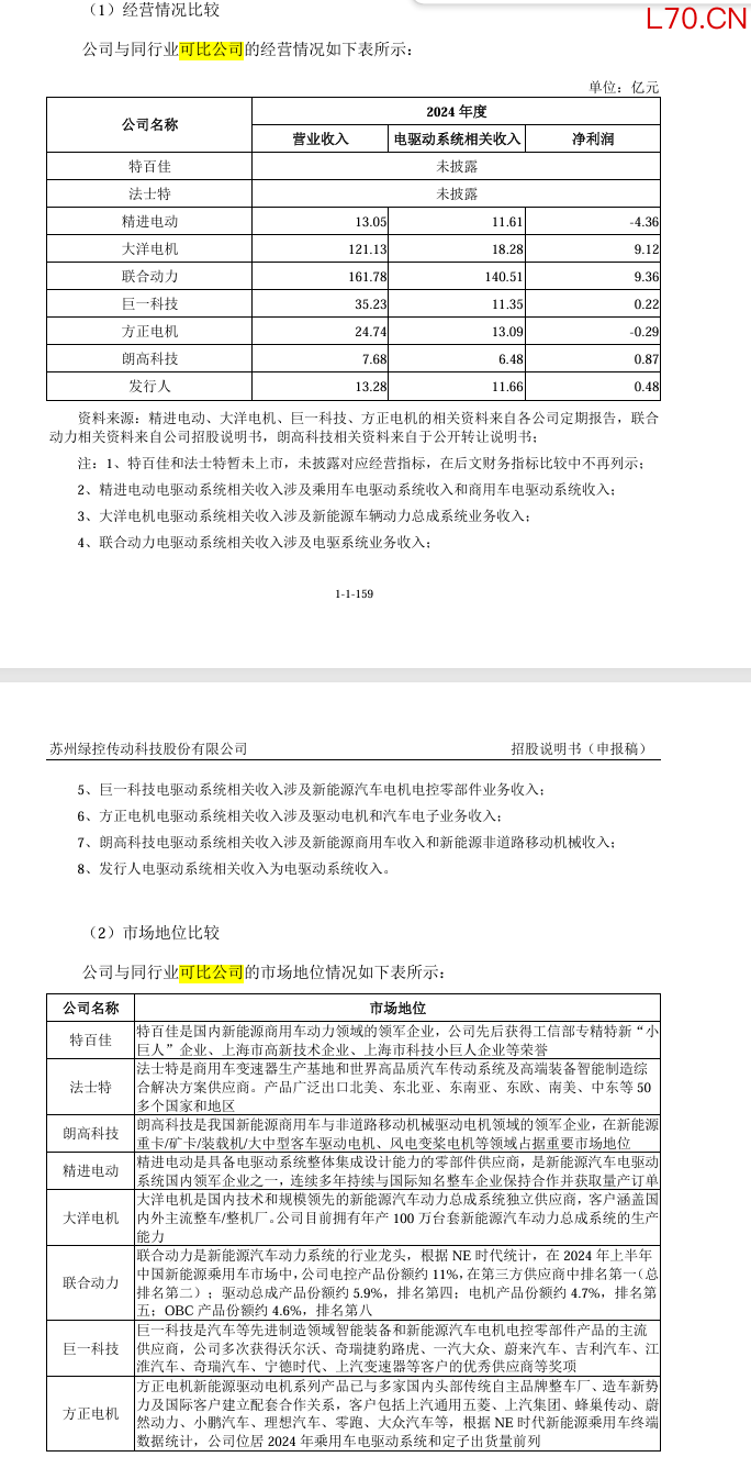 绿控传动与可比公司对比情况: