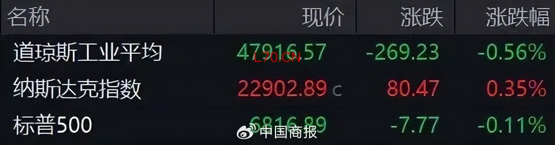 当地时间4月10日,美国三大股指涨跌不一。截至收盘,道指跌0.56%,标普500指数跌0.11%,纳指涨0.35%。