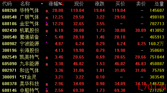 工业气体概念盘中强势拉升,截至收盘,华特气体20%涨停,广钢气体、金宏气体涨超10%,杭氧股份、蜀道装备涨超5%。