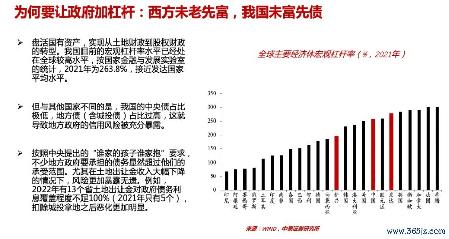 宏观经济是系统性、全面性的,仅仅通过提高中央政府的杠杆率水平和降低地方政府杠杆不足以解决当下尤其是未来面临的严峻问题。因此,有必要以优化股权财政为目标之一,推进国企改革,尤其是率先推进央企改革。