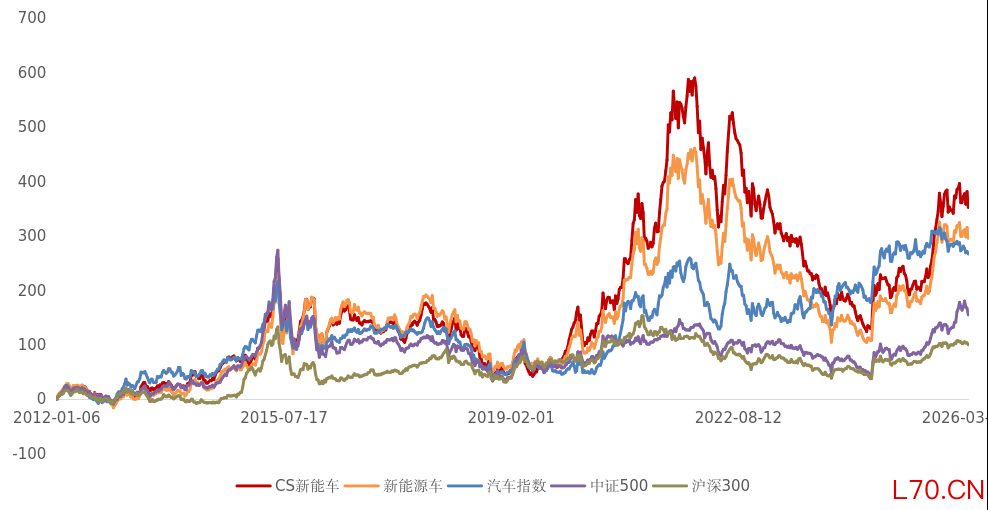 基期以来(2011.12.31-2026.03.23),该指数区间涨跌幅329.98%、区间年化收益率11.14%、年化夏普比率0.50,表现均优于同期国证新能源车指数和中证全指汽车指数。立足产业高质量发展新起点,抢抓全球电动化、智能化红利窗口期配资资讯专题,投资者或可借道新能源车ETF招商(159183)一站式布局整车制造、动力电池、核心零部件等新能源汽车全产业链优质龙头标的,助力投资者把握电动化替代与出海扩张双重红利。