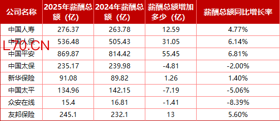 中国人寿以28.32万元排第四,较2024年的26.71万元增加1.61万元,温和涨薪符合其保守定位;